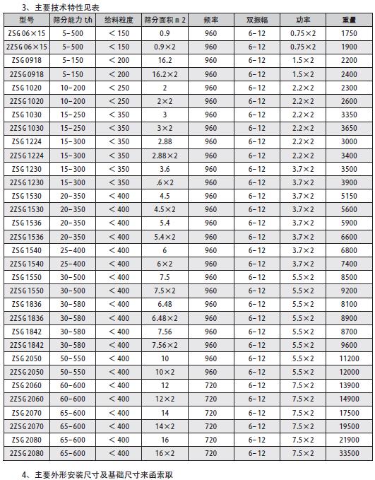 ?。?)敝開型(ZSG-□×□)為座式,無(wú)防塵蓋板,結(jié)構(gòu),用于大篩分能力、無(wú)粉塵污染的顆粒物料的篩分作業(yè)